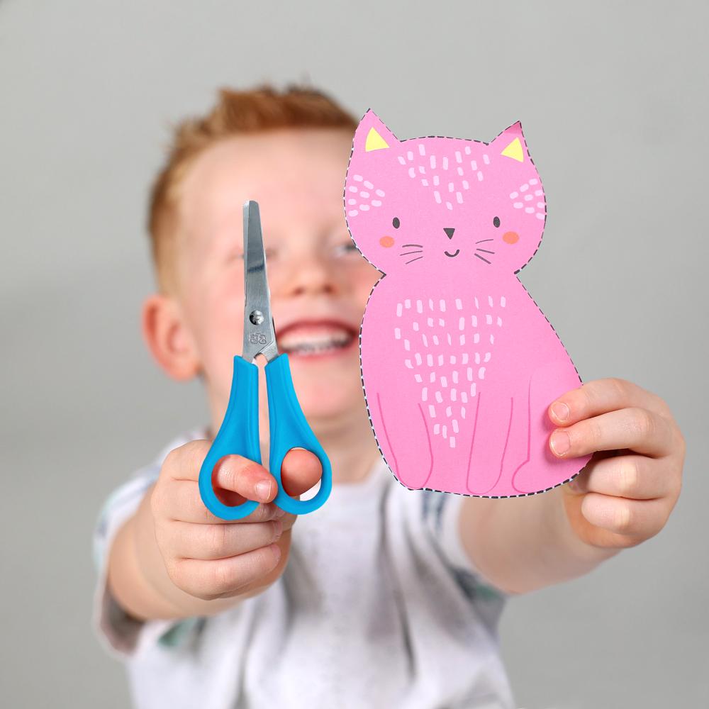 Mit dieser Schere können Kinder ab 3 Jahren ihre Schneidefähigkeiten entwickeln. Das sichere Design ohne scharfe Spitzen macht das Basteln zu einem unbeschwerten Vergnügen.