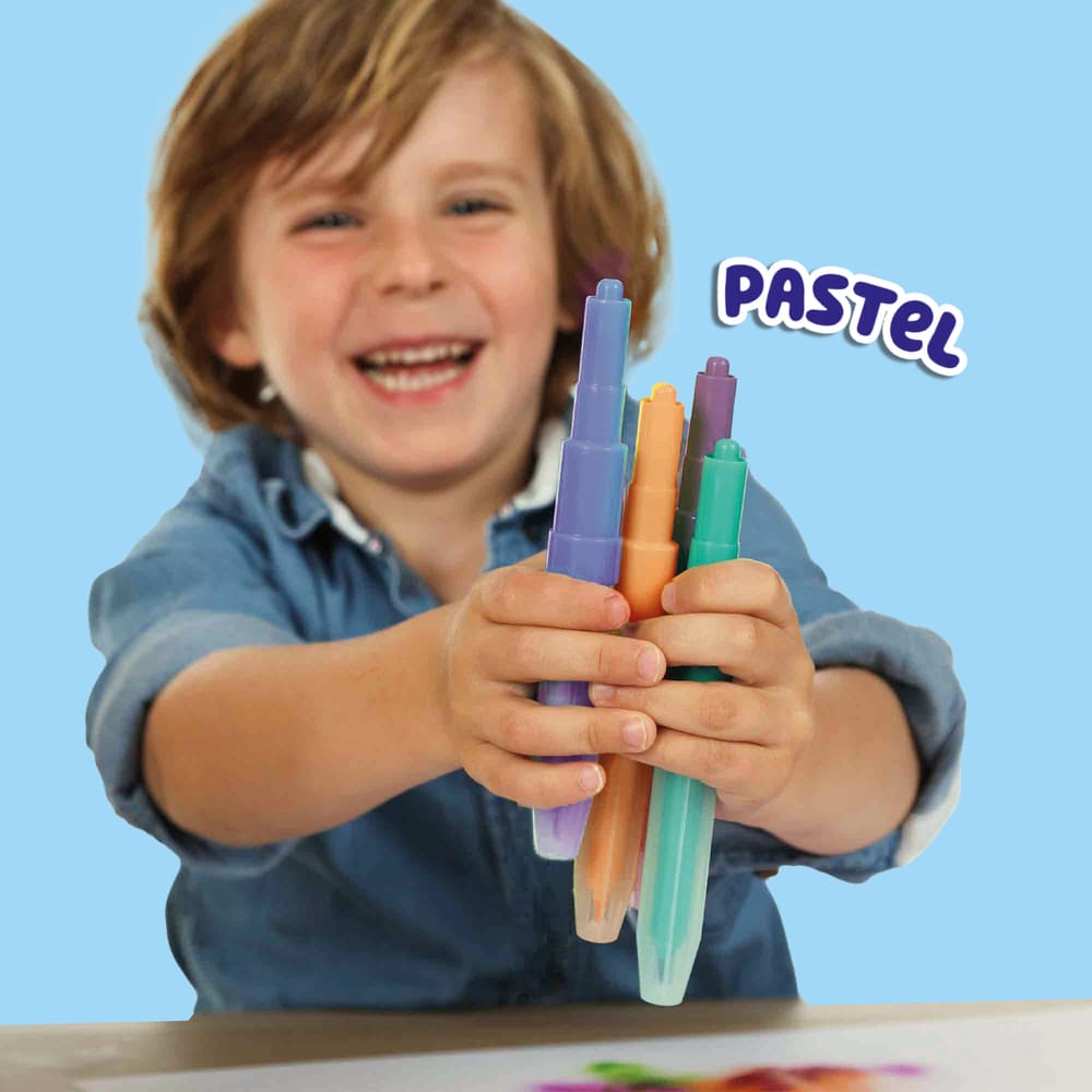 • Drei Arten von Blasestiften: parfümiert, Pastellfarben und leuchtende Farben.