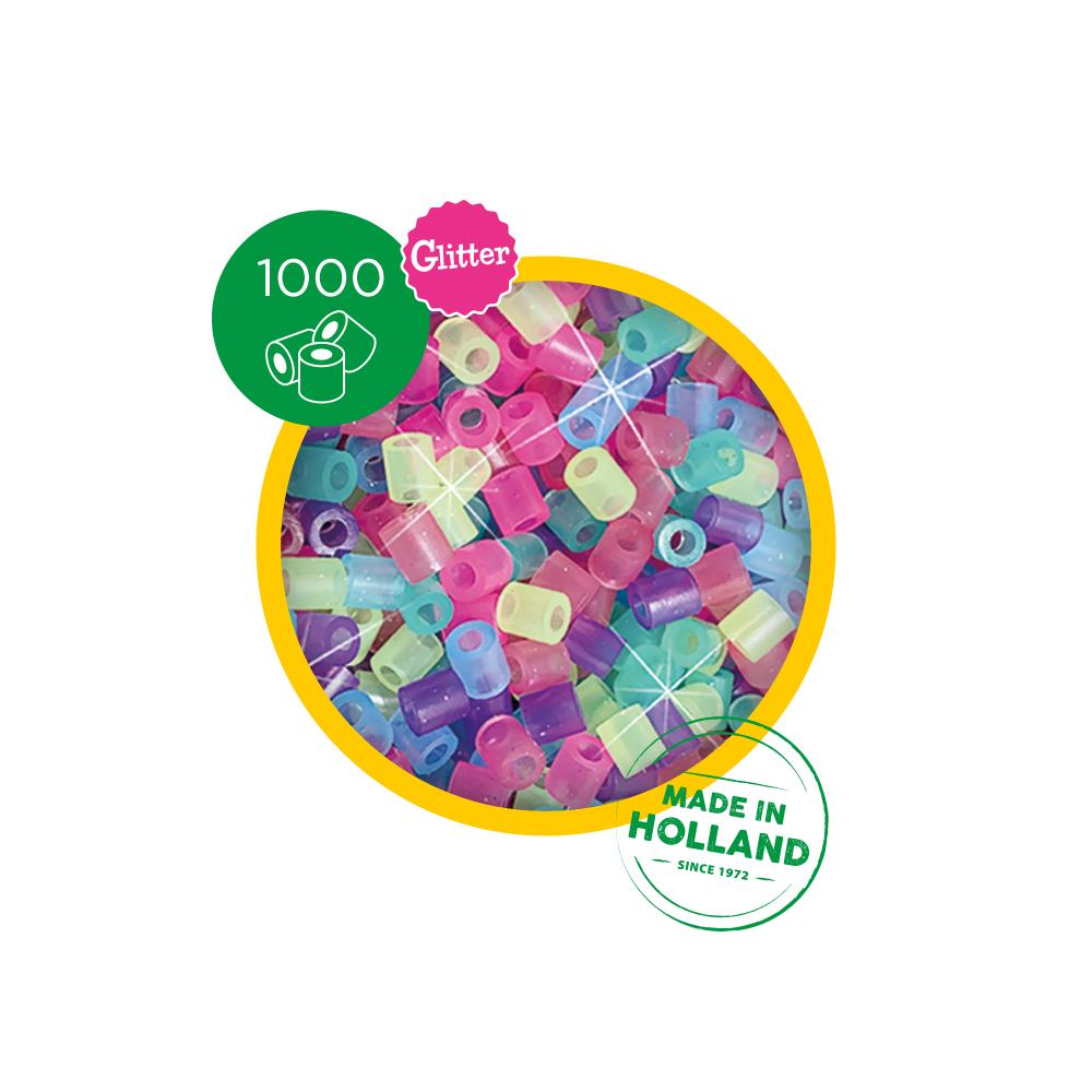 1000 Bügelperlen in verschiedenen Glitzerfarben