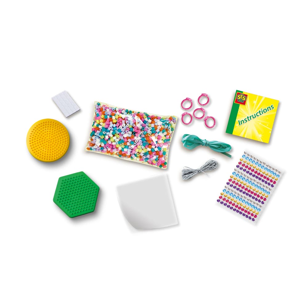 Mit dem Beedz Diamantschmuck-Set von SES Creative kannst du wunderschönen, funkelnden Schmuck herstellen. Mit 1200 diamantförmigen Bügelperlen, elastischen Fäden, Verschlüssen und Anhängern entwirfst du einzigartige Armbänder, Halsketten und Accessoires, die du mit Stolz tragen oder verschenken kannst. Perfekt für junge Modedesigner ab 5 Jahren, die ihrer Kreativität freien Lauf lassen möchten.