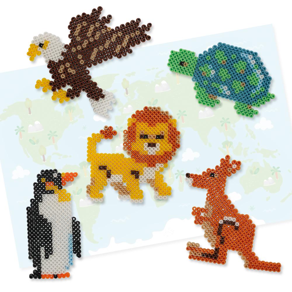 Mit diesem Bügelperlenset von SES Creative können Kinder durch die Kontinente reisen und ikonische Tiere aus der ganzen Welt gestalten. Mit 3500 bunten Perlen und einer quadratischen Platte können sie ganz einfach Pandas, Löwen, Kängurus, Elefanten und viele andere Kreaturen aus dem Tierreich herstellen. Eine große illustrierte Weltkarte hilft dabei, jedes Tier in seiner ursprünglichen Umgebung zu platzieren, wodurch das Spiel zu einer echten pädagogischen und interaktiven Aktivität wird. Diese kreative Freizeitbeschäftigung fördert die Feinmotorik, die Konzentration, die visuelle Erkennung und die Vorstellungskraft und weckt gleichzeitig das Interesse des Kindes an der tierischen und geografischen Vielfalt. Dieses PVC-freie Set entspricht den europäischen Normen EN-71, ist sicher und hypoallergen. Das Kind entwickelt seine Fähigkeiten und hat Spaß dabei, allein oder in Begleitung, und kann stolz seine von einem Erwachsenen gebügelten Kreationen ausstellen. Eine umfassende, spielerische und pädagogische Geschenkidee für junge Weltentdecker, die perfekt ist, um zu lernen und gleichzeitig kreativ zu sein und die Kontinente spielerisch zu entdecken.