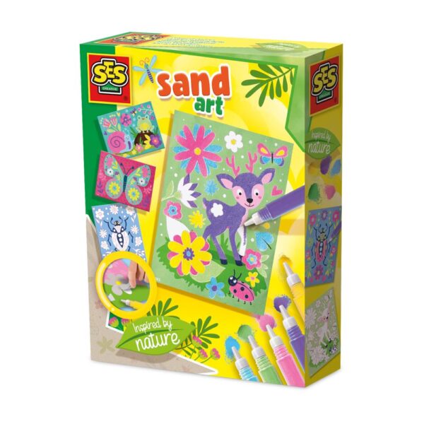 Mit dem Sandbilder Bastelset „Inspired by Nature“ von SES Creative entdecken Kinder ab 3 Jahren die Kunst, mit farbigem Sand wunderschöne Naturmotive zu gestalten. Das Set enthält 6 selbstklebende Bastelkarten mit vorgestanzten Bereichen, die einfach abgezogen und mit Sand bestreut werden. Blumen, Tiere und weitere Naturthemen werden so lebendig und farbenfroh zum Leben erweckt. Mit 5 leuchtenden Sandfarben in praktischen Streutuben (Gelb, Hellblau, Hellgrün, Rosa und Violett) gelingt die kreative Umsetzung kinderleicht und sauber. Ein Auffangbehälter sorgt für ordentliches Arbeiten und einfache Wiederverwendung des Sandes. Die beiliegende Schritt-für-Schritt-Anleitung erklärt den Ablauf leicht verständlich. Das Set fördert die Konzentration, Kreativität und die Feinmotorik von Kindern auf spielerische Weise. Ein liebevoll gestaltetes Bastelset, das sich hervorragend als kreative Geschenkidee für kleine Naturfreunde eignet und stundenlangen Bastelspaß garantiert. Durch das einfache Prinzip entsteht wenig Unordnung, was das Set besonders alltagstauglich macht. Ob als ruhige Nachmittagsbeschäftigung oder gemeinsame Aktivität mit Freunden – dieses Set verbindet Kreativität, Natur und Freude am Basteln.
