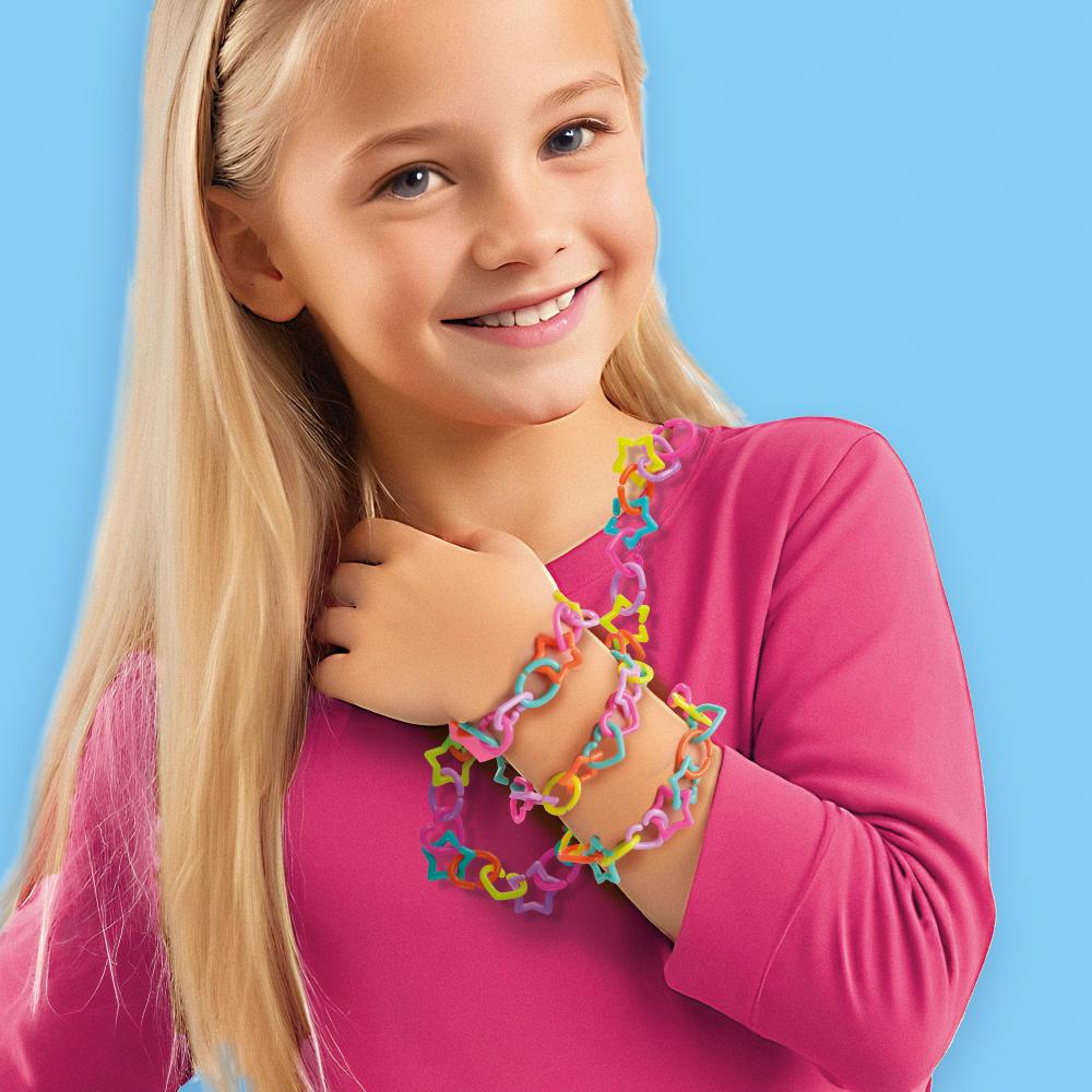 Lassen Sie kleine Designer mit Schmuckanhängern glänzen! 300 fröhliche Anhänger in verschiedenen Formen lassen sich ganz einfach miteinander verbinden. So können Sie im Handumdrehen Armbänder und Halsketten entwerfen – und sie genauso einfach wieder auseinandernehmen, um einen neuen Look zu kreieren.