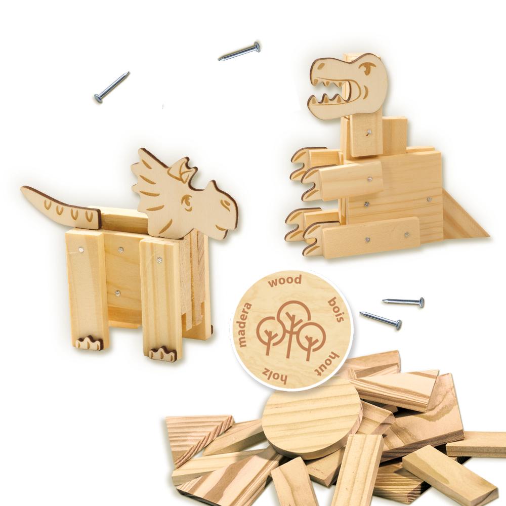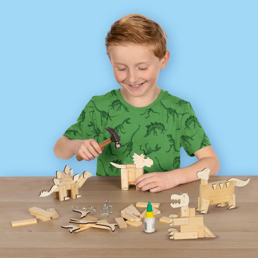 Mit diesem Holzbaukasten können Kinder ab 6 Jahren eigene Dinosaurier mit Hammer, Nägeln, Kleber und vorgeschnittenen Holzteilen bauen. Dank einfacher Anleitung entstehen ein T-Rex, Stegosaurus, Pteranodon oder kreative Eigenkreationen. Das sorgfältig zugeschnittene Holz erleichtert die Montage und vermittelt spielerisch den Umgang mit echten Werkzeugen. Dabei werden Koordination, Feinmotorik, räumliches Denken und Selbstvertrauen gestärkt. Das Set enthält alles, was für den Start nötig ist: kindgerechter Hammer, Nägel, Holzformen und Kleber. Hergestellt in den Niederlanden von SES Creative – bekannt für hochwertiges Lernspielzeug – bietet dieses Set einen unterhaltsamen Einstieg in die Holzbearbeitung. Ideal für ruhige Nachmittage zu Hause, Werkstätten oder Schulprojekte. Es regt Fantasie und Ausdauer an – jede fertige Figur ist ein kleines Kunstwerk, das stolz präsentiert werden kann. Eine sichere und kreative Einführung in die Welt des Bastelns für Kinder.