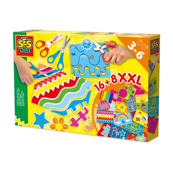 Mit dem Bastelset „Ich lerne Schneiden XXL“ von SES Creative lernen Kinder ab 3 Jahren das Schneiden sicher und spielerisch. Das Set enthält eine Kinderschere, die nur Papier schneidet, sowie eine Metallschere, die den Übergang zum präziseren Schneiden erleichtert. Insgesamt 24 Schneideblätter – 16 in Standardgröße und 8 in XXL-Format – bieten eine Vielzahl an Aufgaben mit unterschiedlichen Schwierigkeitsgraden. Kinder üben das Ausschneiden entlang von Linien und verbessern dabei ihre Feinmotorik, ihre Hand-Auge-Koordination sowie ihre Konzentration. Jede fertige Form gibt ihnen ein Erfolgserlebnis und stärkt das Selbstvertrauen. Das Set ist besonders geeignet für zu Hause, den Kindergarten oder die Vorschule. Es unterstützt eigenständiges Arbeiten, fördert kreative Fähigkeiten und bietet eine sichere Einführung in den Umgang mit Scheren. Dank der durchdachten Gestaltung ist dieses Schneideset eine wertvolle Ergänzung für erste Bastelstunden und ein tolles Geschenk für kreative Kinder.
