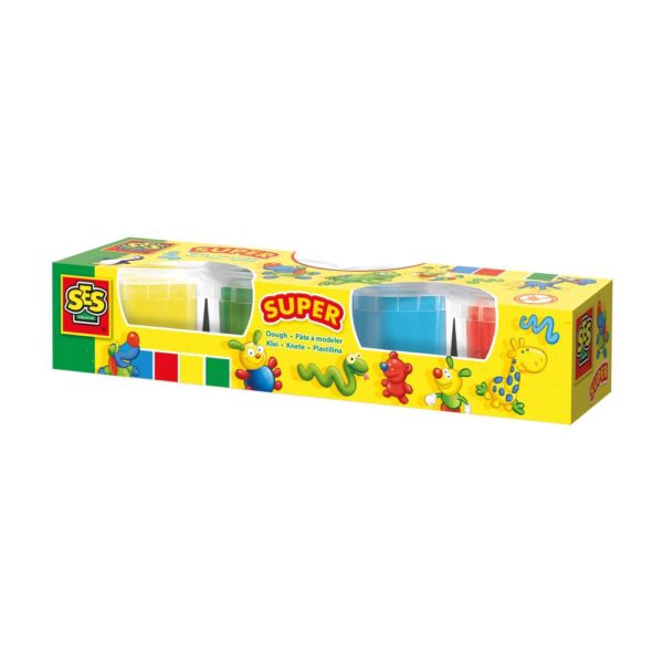 Mit diesem fröhlichen Knet-Set von SES Creative können kleine Kinder die schönsten Kreationen gestalten. Das Set enthält vier Töpfe mit Knetmasse in den Grundfarben Rot, Gelb, Grün und Blau. Die Knetmasse ist superweich und trocknet beim Spielen nicht aus, sodass Ihr Kind endlos kneten und formen kann. Perfekt für kleine Künstler, die gerne kreativ sind!