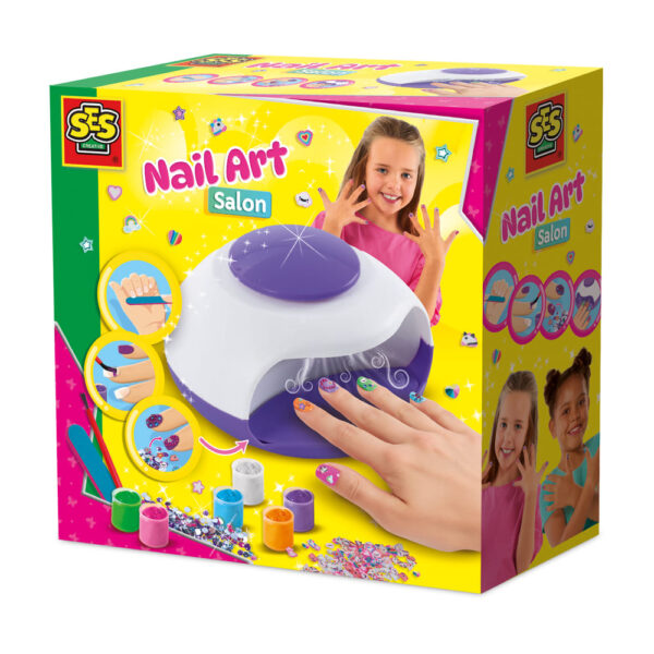 Mit dem Nail Art Salon von SES Creative kreierst du ganz allein die schönsten Nägel. Lackiere deine Nägel in einer der sechs fröhlichen Farben, trockne sie schnell mit dem speziellen Nageltrockner und verziere sie anschließend mit glitzernden Diamanten oder fröhlichen Einhorn-Dekorationen. Jedes Mal entsteht ein einzigartiger Look, ganz nach deinem Geschmack. Lass deiner Fantasie freien Lauf und entdecke, wie viel Spaß es macht, dein eigenes Nagelstudio zu betreiben.