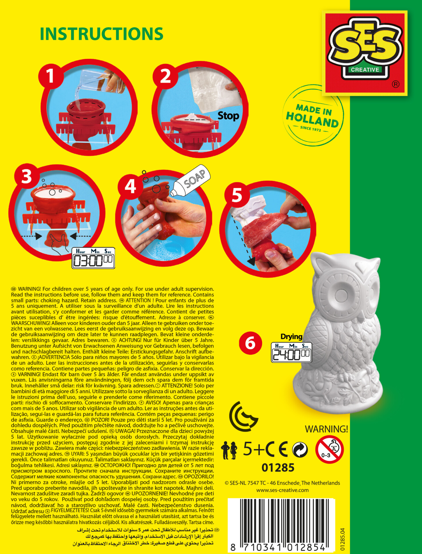 Magst du auch Eulen? Mit diesem kreativen Paket von SES machst du deine eigenen Eulen aus Gips. Gieße den Gips in die 3D-Gussform. Lass das Modell trocknen und bemale deine Eule mit den Farben im Set. Mit dem Glitzer kannst du dein Kunstwerk zum Schluss noch verzieren. Das macht riesigen Spaß mit tollen Ergebnissen!