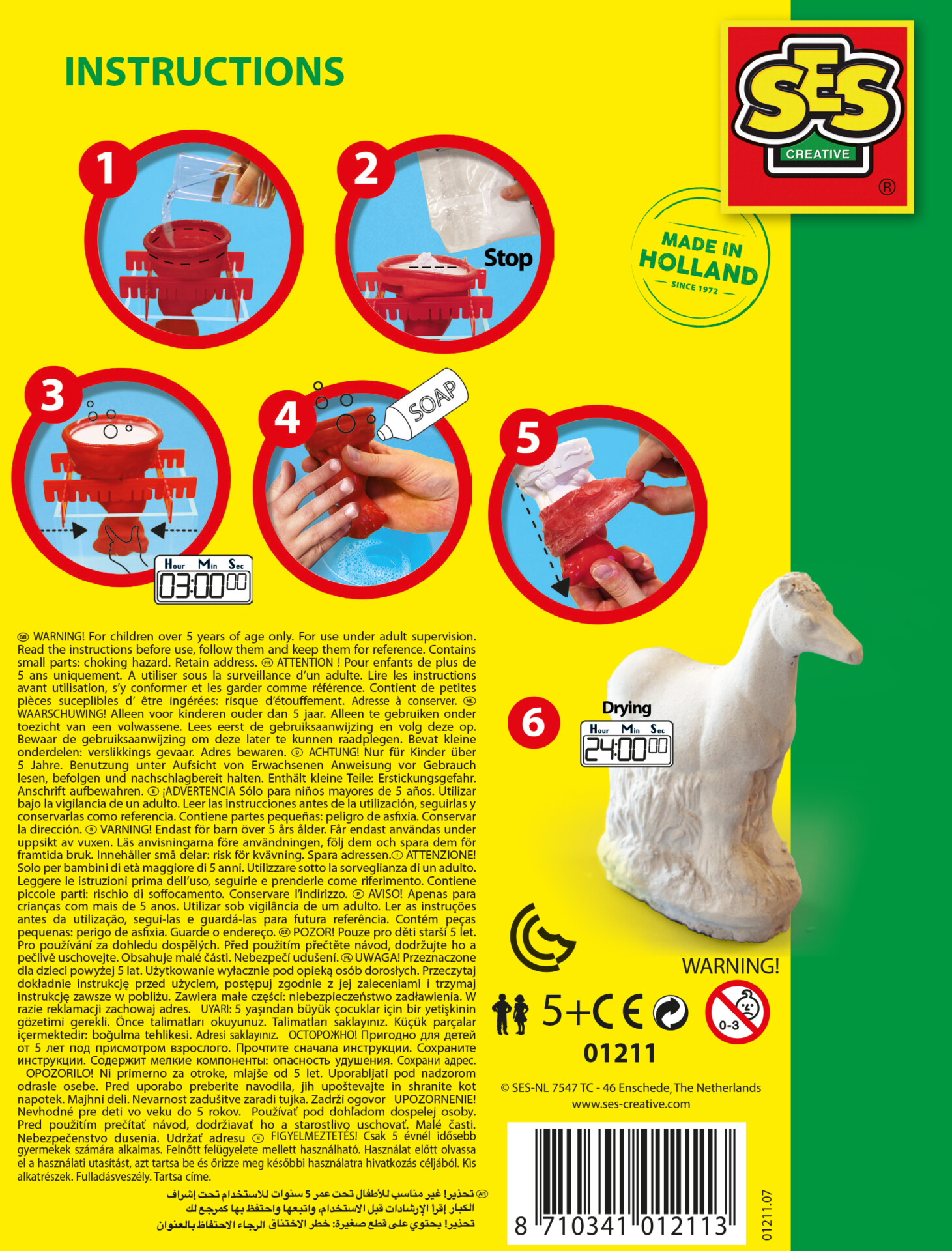 Gipsfiguren gießen und anmalen von SES. Gipsgießset für echte Pferdefans. Mit diesem Set können Kinder ein 3D-Pferd ganz einfach selber herstellen. Die Anleitung ist kindgerecht gehalten. Nach Fertigstellung kann das Gipspferd im Kinderzimmer dekoriert werden.