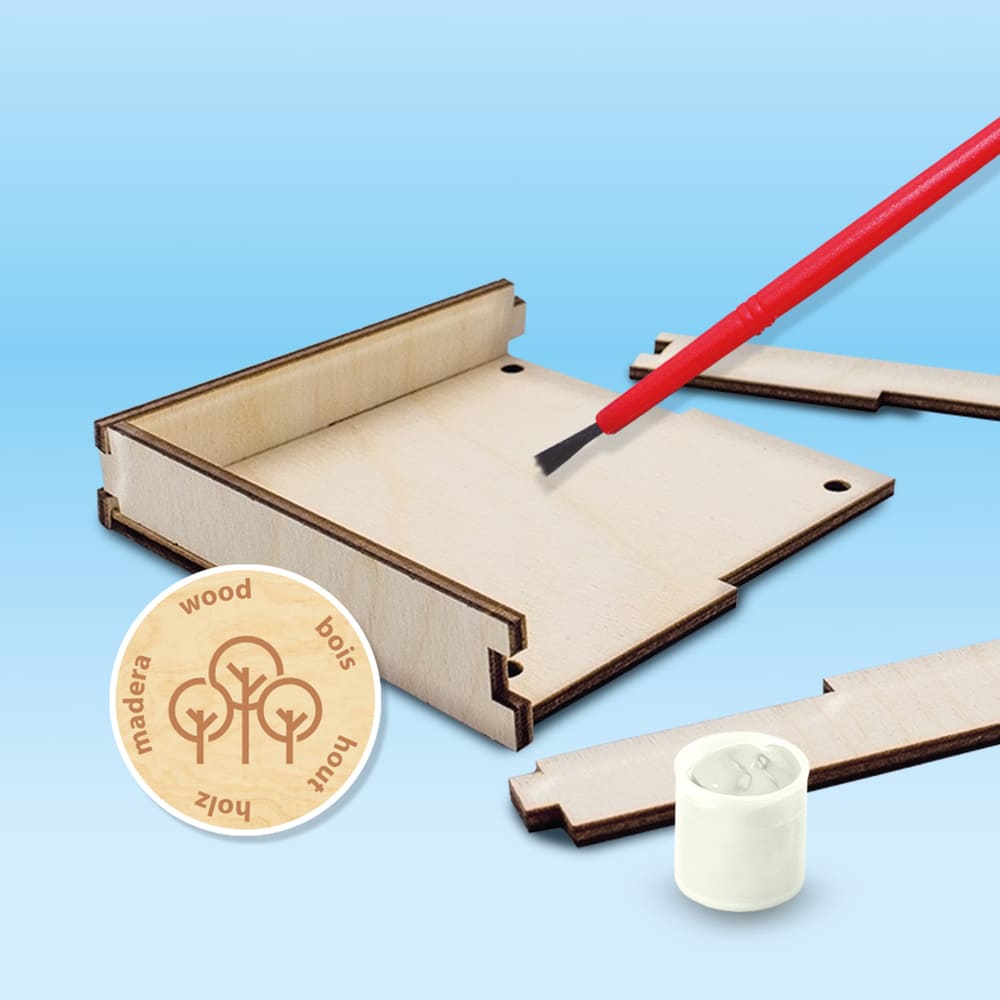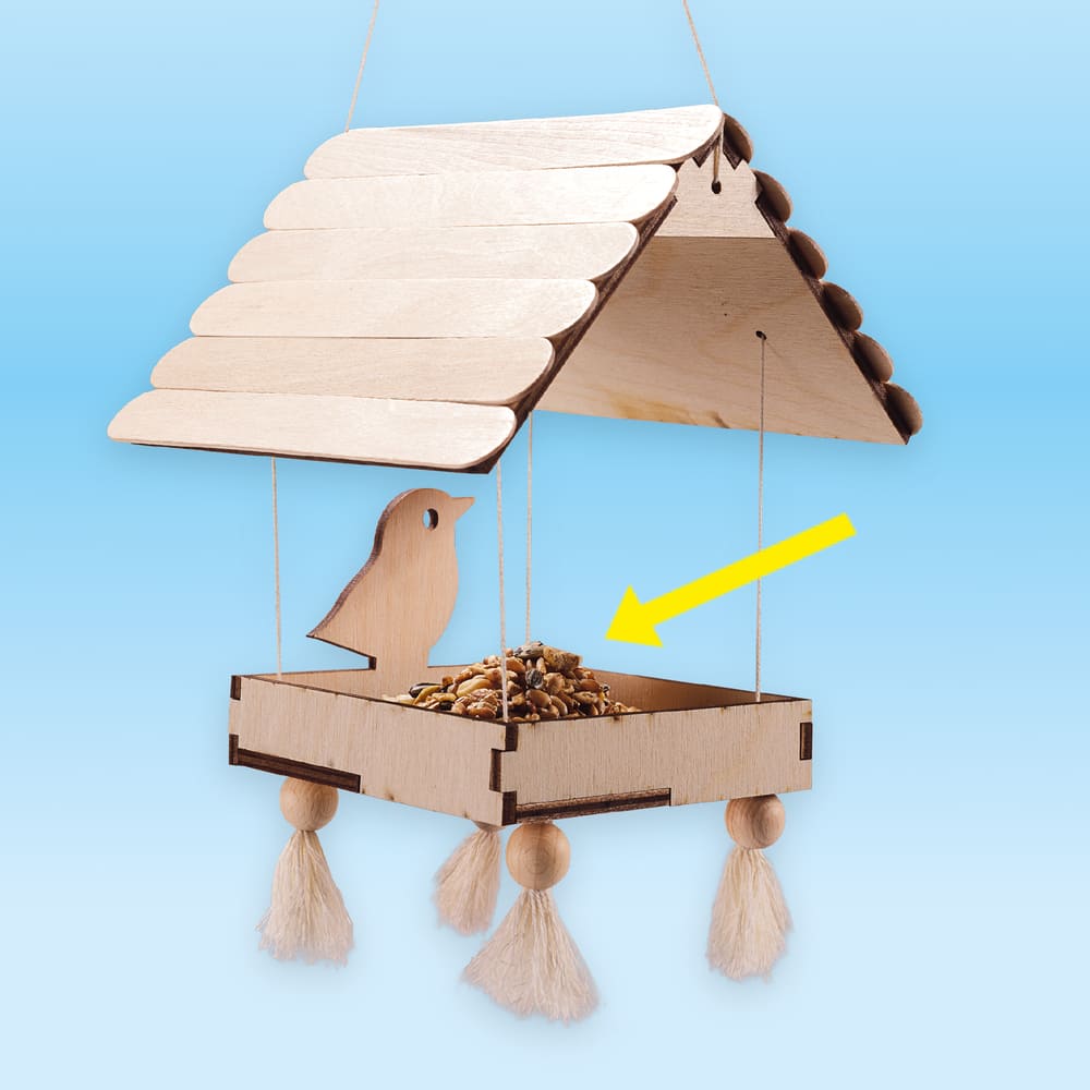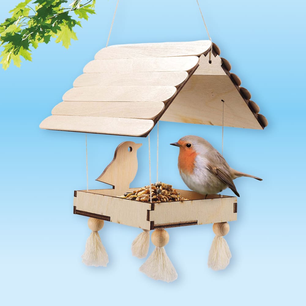 This is cool! You can now build your own wooden feeding station and spoil the birds in your garden. This set contains all the wooden parts you need to make a sturdy and beautiful bird feeder. Hang it in the garden or on the balcony and enjoy watching the birds come to feast on the food you have prepared.