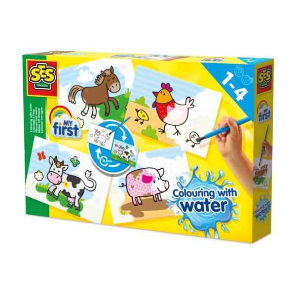 Discover the magic of colouring with water with the SES Creative My First Colouring with Water – Farm Animals set. Magic with water and paint, but without the mess! Use the special brush, dip it in water, and watch the farm animals appear on the cards. It’s water magic! Ideal for toddlers who love to be creative but are still too young for paint or markers.