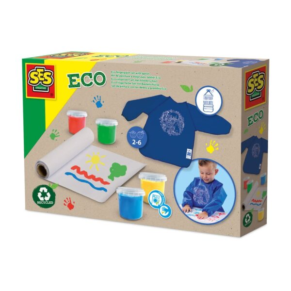 With the SES Eco Finger Paint Set, children can enjoy painting to their heart’s content, while you can be sure you are making a sustainable and safe choice. This complete set contains 4 bright colours of finger paint, an extra-long paper roll and a special messy apron made from 100% recycled PET bottles. Perfect for little artists who love to discover, craft and experiment with colours – and ideal for parents who value sustainability.