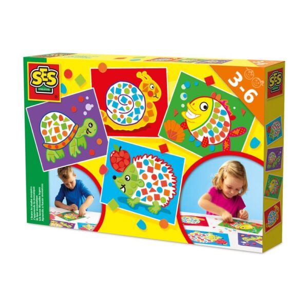 Discover how fun and easy mosaics can be! With the I Learn To Make Mosaics set from SES Creative, children can create their own colourful works of art step by step. The set contains four cheerful, pre-printed cards and various coloured and shaped mosaic stickers that children can use to get creative. Perfect for young artists who want to experiment with shapes, patterns and colours.
