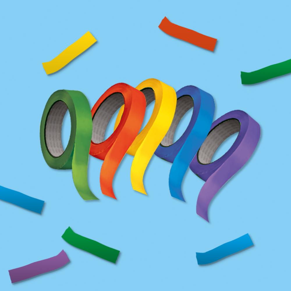 5 rolls of coloured adhesive tape – sturdy, colourful and easy to use