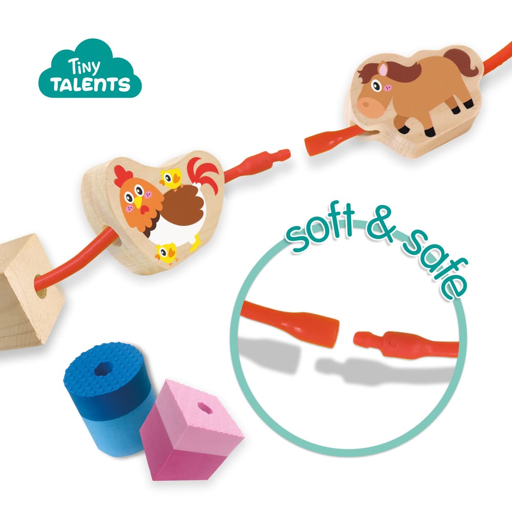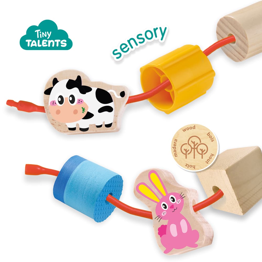 Thread, feel and discover with the Lacing Sensory Beads – Farm Animals!
