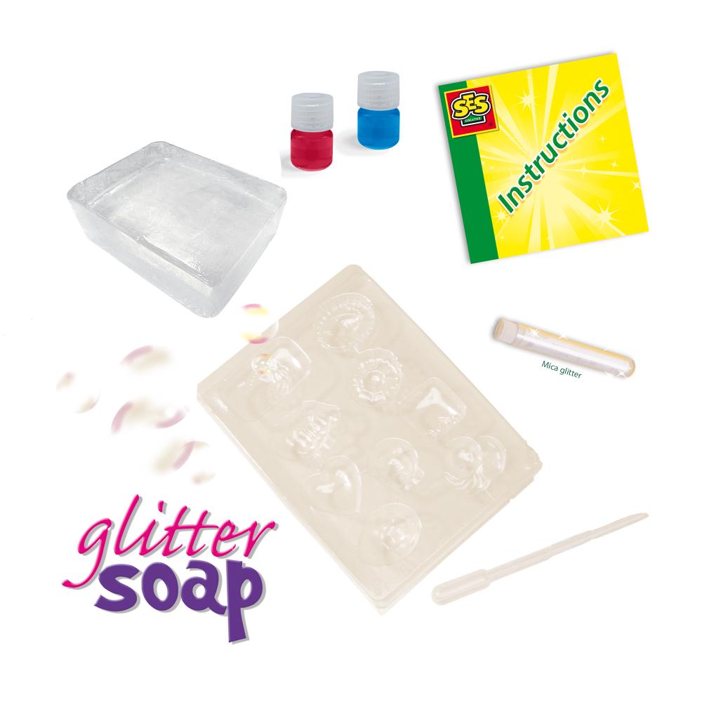 Let your creativity shine with the Hobby Pink – Glitter Soap set from SES Creative. This set offers everything you need to make your own beautiful soaps. With colourful dyes, glitter and fun moulds, children can create their own soap artworks, ideal for crafty girls who love fragrant, glittery creations!