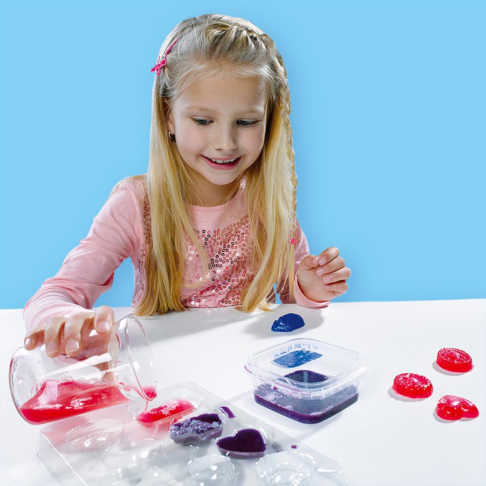 This set is a dream come true for any girl who loves creativity and imagination. Crafty girls will have hours of fun mixing colours, choosing their favourite shapes and admiring their homemade glitter soaps. Whether for the bathroom or as a homemade gift, each soap is a little work of art.