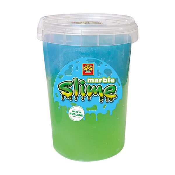 Slime time! Not afraid of dirty hands? With this marble slime in green and blue, you can knead, pull and play endlessly. The two colours in one pot create a unique marble effect that changes every time you play with it. Perfect for children who love creative and tactile play.