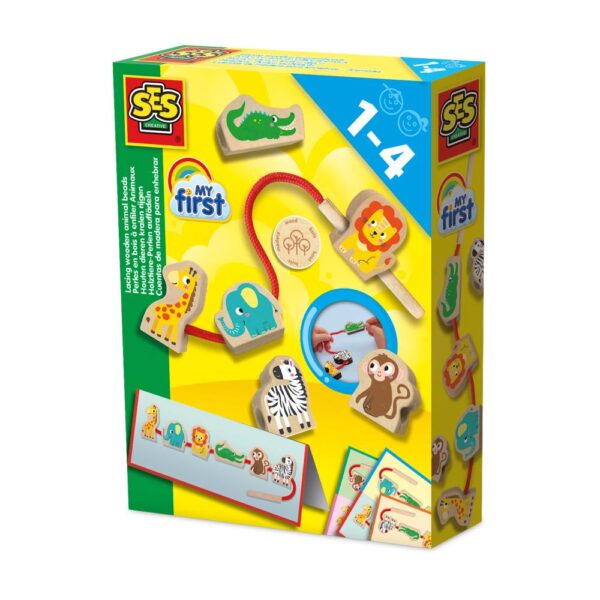 With My First – Wooden Animal Bead Stringing, young children can learn how to string beads in a fun and educational way. This set includes a stringing cord with a wooden inserter and animal beads that are specially designed for small hands. Ideal for toddlers. This set stimulates creativity, fine motor skills and hand-eye coordination.