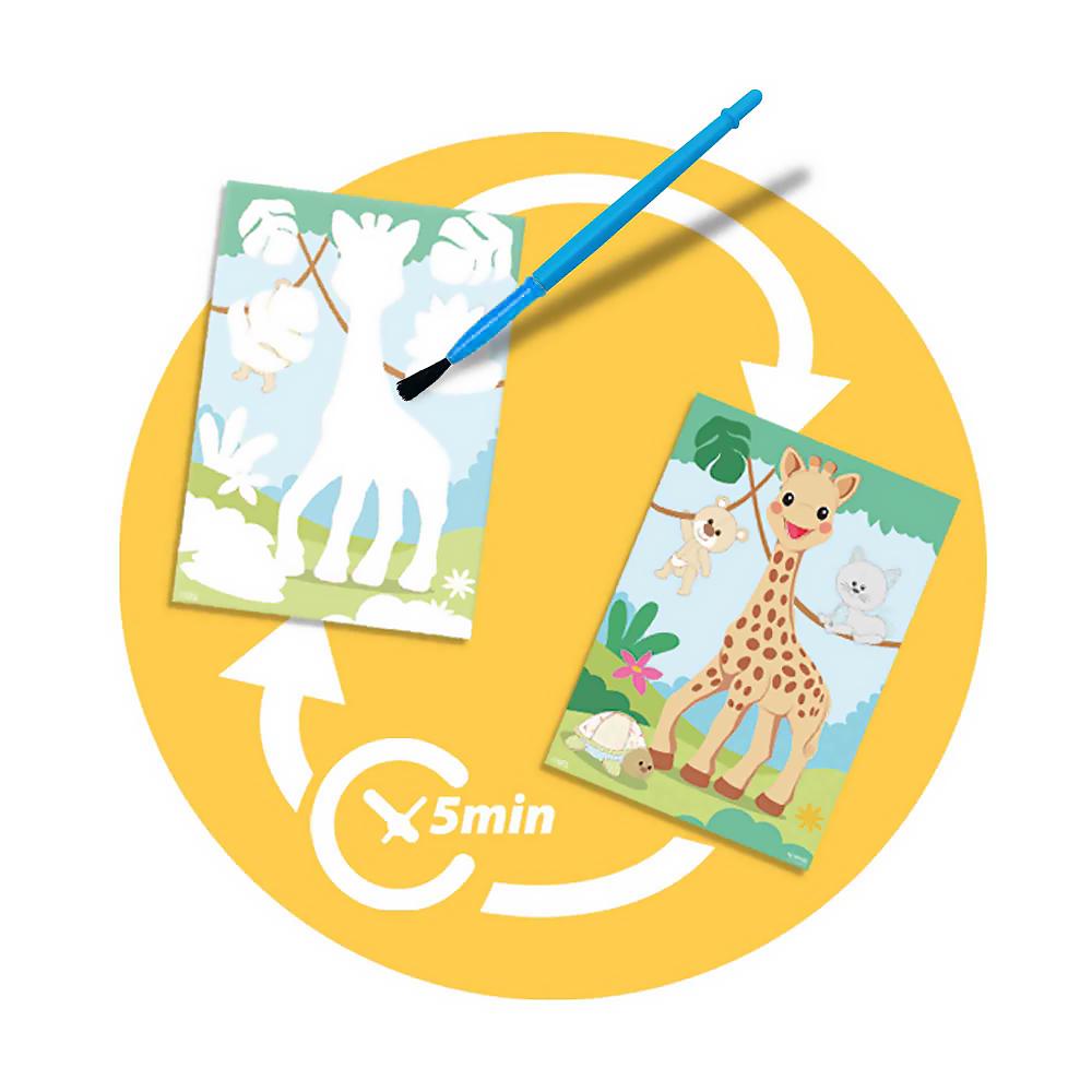 Discover the magic of mess-free painting with Sophie la Girafe. This set is perfect for the youngest artists. Use the brush and watch the colours appear on the cheerful cards, using only water. Bring Sophie the giraffe to life with water magic! Ideal for toddlers who love to be creative but are still too young for paint or markers.