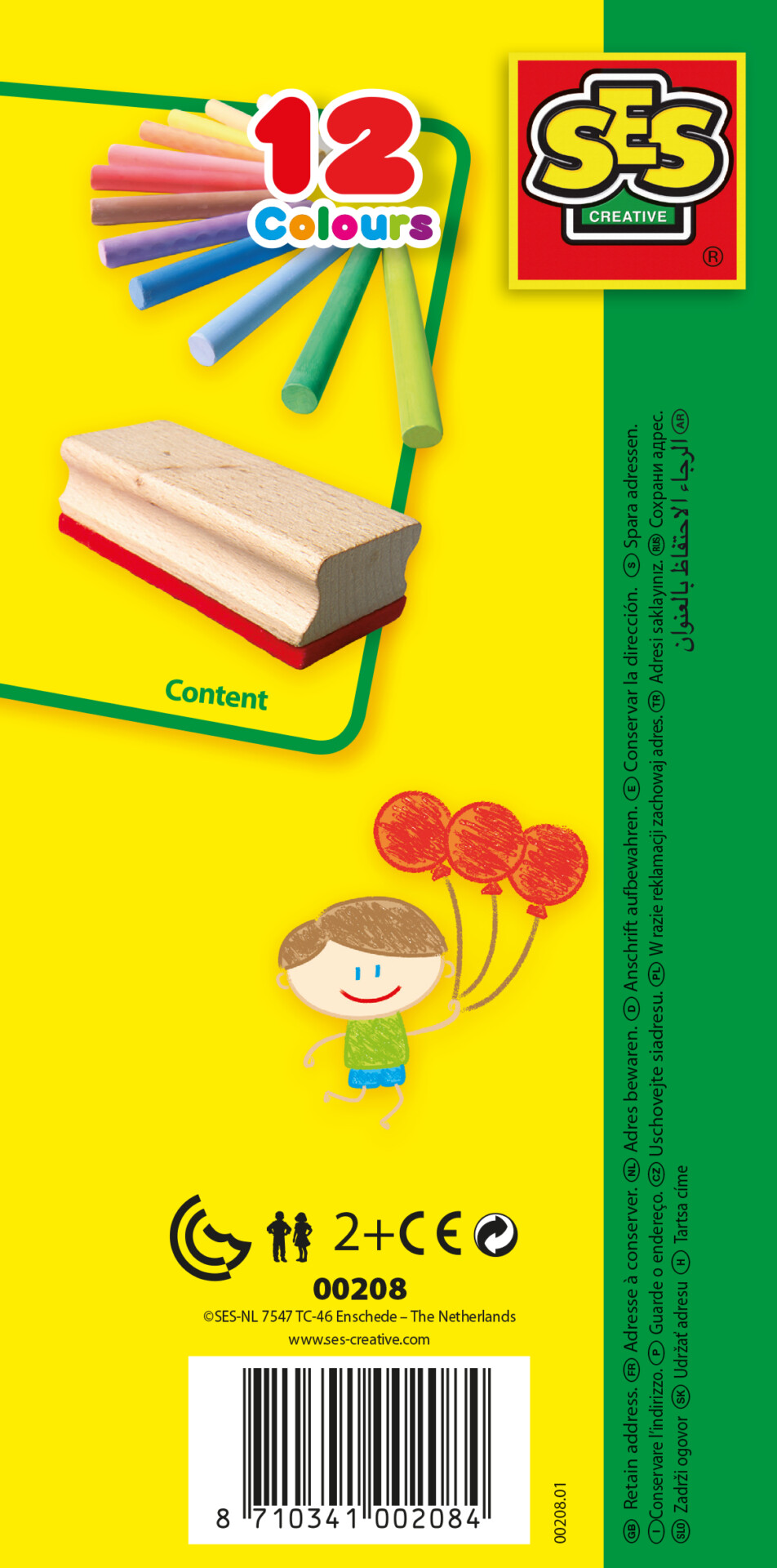 With the SES chalk, you can make beautiful drawings in all the colours of the rainbow. These blackboard chalks are less dusty than other chalks. Not completely satisfied with your work? Wipe the board clean with the chalkboard wiper and start again. Handy for at home or at school.