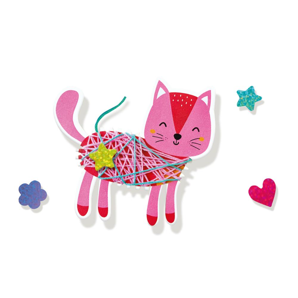 Ces joyeux animaux ont froid et ont besoin de votre aide ! En enroulant le fil coloré autour des figurines en carton, vous leur offrez un « manteau » chaud. Que vous travailliez avec soin ou de manière sauvage et ludique, chaque création est unique et vous appartient entièrement. Ajoutez des autocollants pailletés pour une touche festive et voyez vos animaux prendre vie !