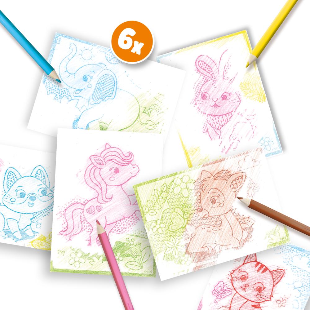 Découvrez la magie des cartes à gratter ! Grattez la couche noire et faites apparaître des couleurs éclatantes. Avec 6 cartes joyeuses et 8 crayons de couleur, vous pouvez rendre chaque création unique — idéal pour s’amuser tranquillement, sans écran.