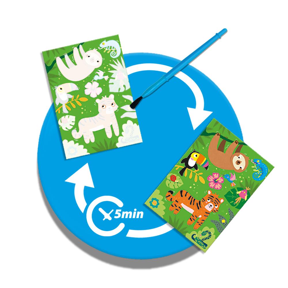 Ce set est idéal pour les parents qui souhaitent faire profiter leurs enfants d’une activité créative et sans souci. Il offre une façon amusante de jouer et d’apprendre, tout en stimulant la curiosité et l’imagination de votre enfant. Les enfants peuvent faire apparaître les animaux cachés de manière magique. Les cartes peuvent être utilisées à l’infini, pour un plaisir sans fin. Une excellente façon de stimuler la créativité sans faire de désordre.