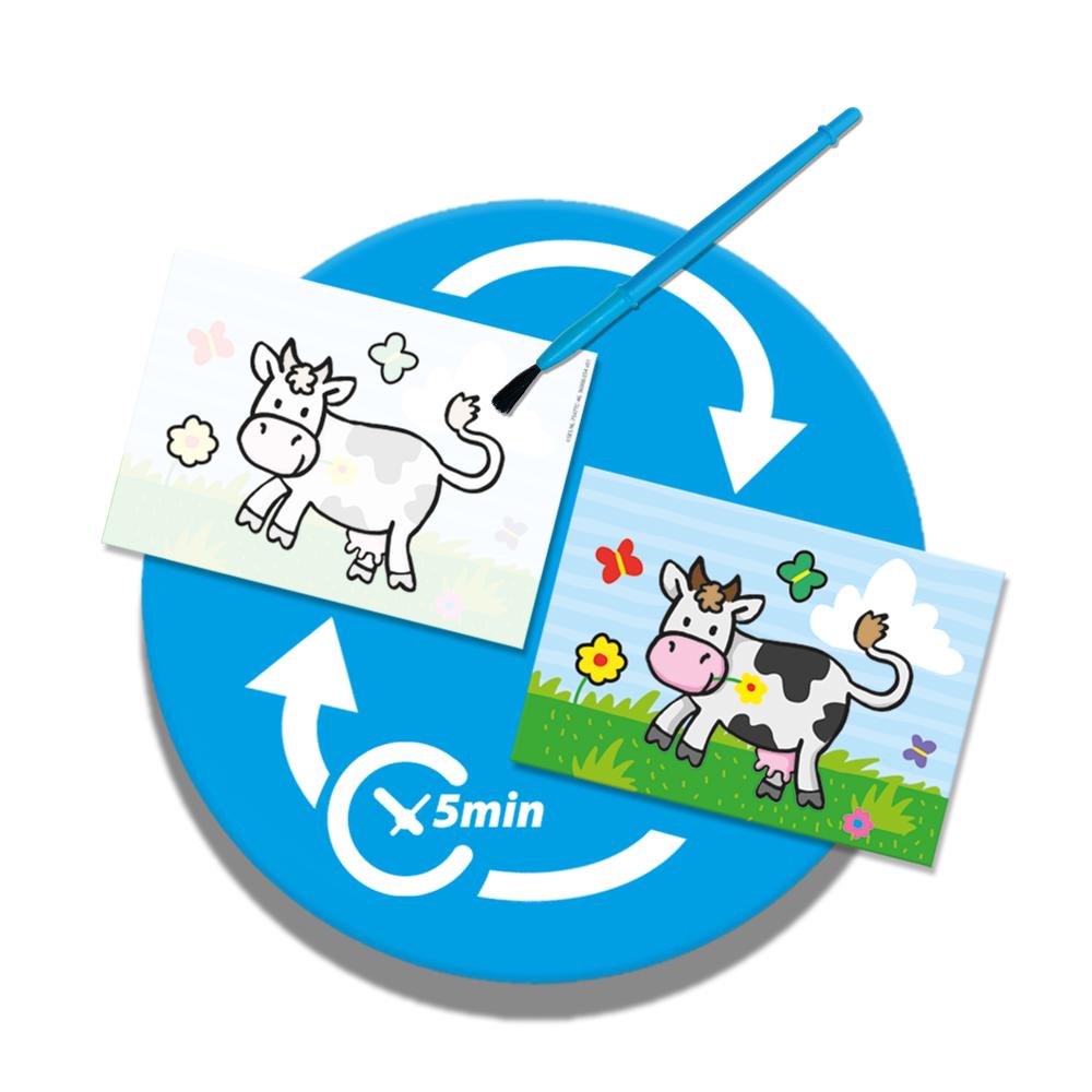Offrez à votre enfant une expérience artistique propre et éducative avec le Coloriage Magique à l’Eau – Animaux de la Ferme. Conçu pour les enfants dès 1 an, ce kit comprend 4 cartes illustrées d’animaux de la ferme qui révèlent leurs couleurs lorsqu’elles sont mouillées avec le pinceau fourni. Une fois sèches, les couleurs disparaissent, permettant aux enfants de recommencer l’activité à l’infini.