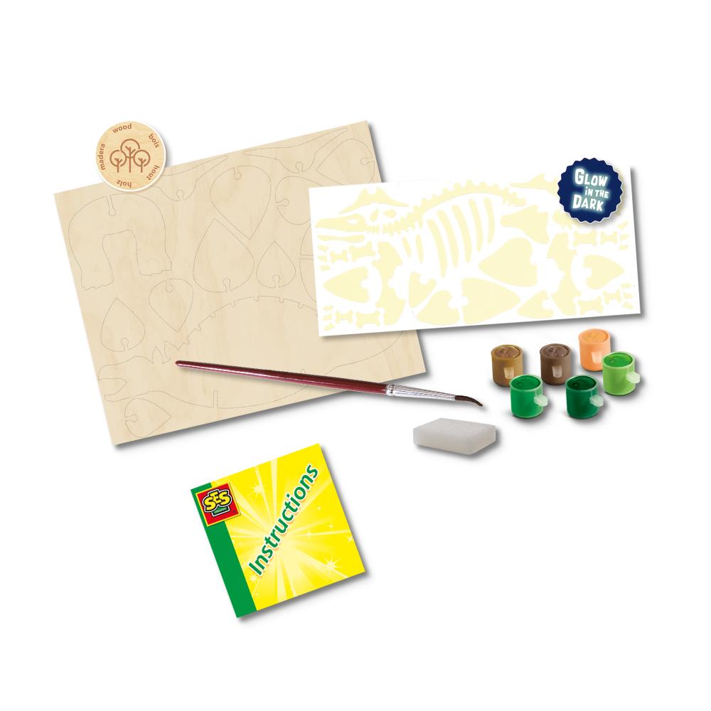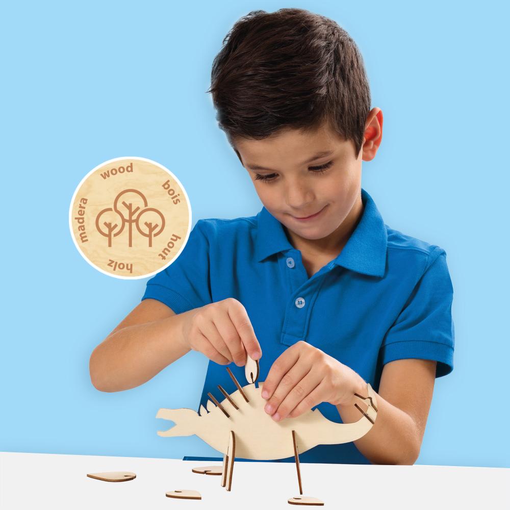 Avec le kit Dino Glow in the Dark en bois, vous pouvez construire et décorer un dinosaure qui brille même dans le noir. Parfait pour des heures de jeu créatif.