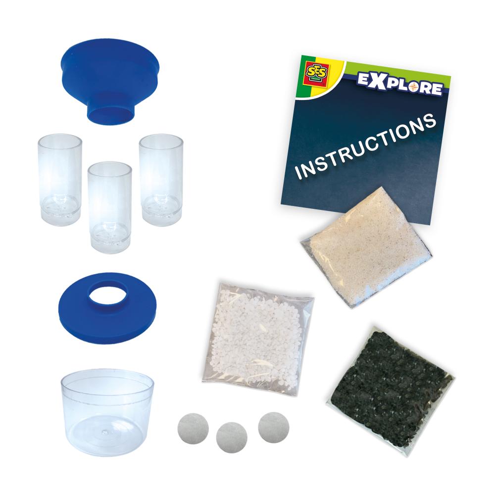 Découvrez comment filtrer l’eau et construisez votre propre système de filtration ! Ce kit vous montre étape par étape comment filtrer l’eau à l’aide de différents matériaux naturels tels que le sable, les cailloux et le charbon actif. Parfait pour les enfants curieux qui aiment expérimenter et veulent en savoir plus sur la nature et la science.