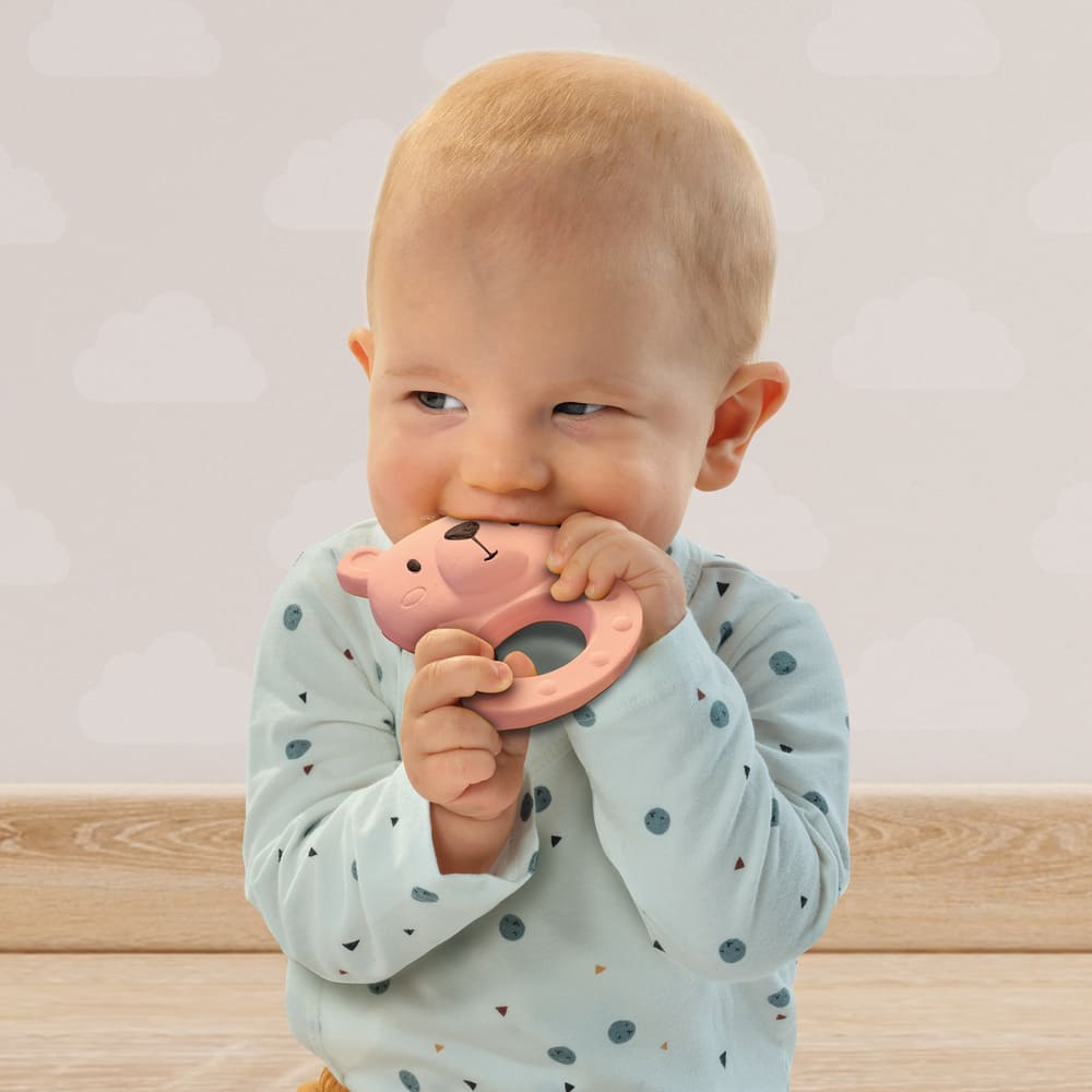 Découvrez Bo Bear, l’adorable jouet de dentition 100 % caoutchouc naturel. Ce jouet a été spécialement conçu pour aider les bébés pendant la poussée dentaire. Bo Bear soulage non seulement les douleurs, mais stimule également tous les sens de votre tout-petit de manière sûre et naturelle. Parfait pour les bébés à partir de 3 mois !