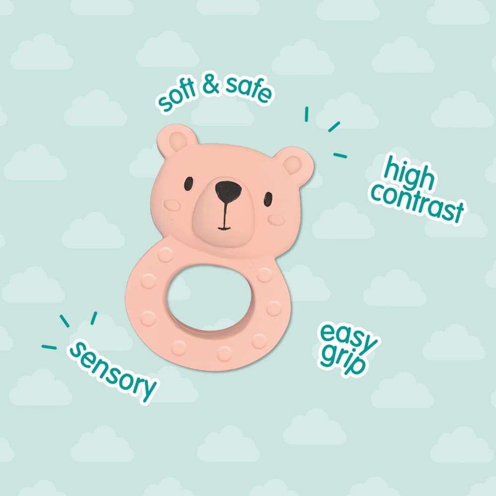 Bo Bear est fabriqué à partir de caoutchouc 100 % naturel et peut être mordu en toute sécurité par votre bébé. Sa texture douce soulage les poussées dentaires tout en stimulant la motricité buccale. Cet ours joyeux est facile à tenir pour les petites mains et aide votre tout-petit à découvrir le monde en toute sécurité.