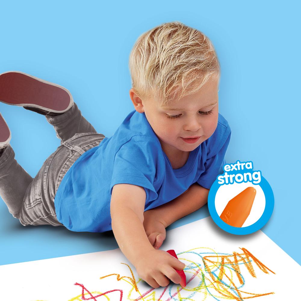 Ces craies sont parfaites pour les enfants à partir de 1 an et sont totalement sûres. Elles sont difficiles à casser, ce qui leur permet de résister aux chocs pendant le jeu. De plus, elles sont facilement lavables, ce qui signifie que les taches sur les vêtements ou les meubles s’enlèvent facilement. Grâce à leurs points forts, les petits peuvent exprimer leur créativité pendant des heures sans que les craies ne s’usent ou ne se cassent rapidement. Les craies contribuent au développement de la motricité fine et stimulent la pensée créative. Ce set est le choix idéal pour les tout-petits qui aiment partir à la découverte des couleurs !