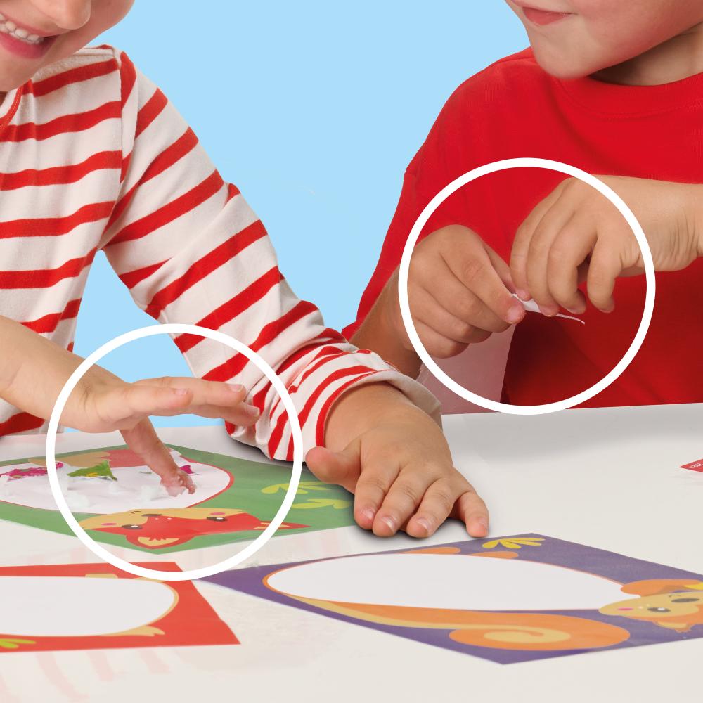 Ce superbe kit est idéal pour s’initier à la création de collages, spécialement conçu pour les petites mains. Grâce à des feuilles colorées et imprimées de motifs joyeux et à une colle à doigts sans danger, les tout-petits peuvent explorer leur créativité et leur imagination tout en réalisant des collages colorés. Le plus amusant ? Pas besoin de pinceau : il suffit d’utiliser ses doigts pour appliquer la colle, pour une expérience manuelle ludique et tactile.