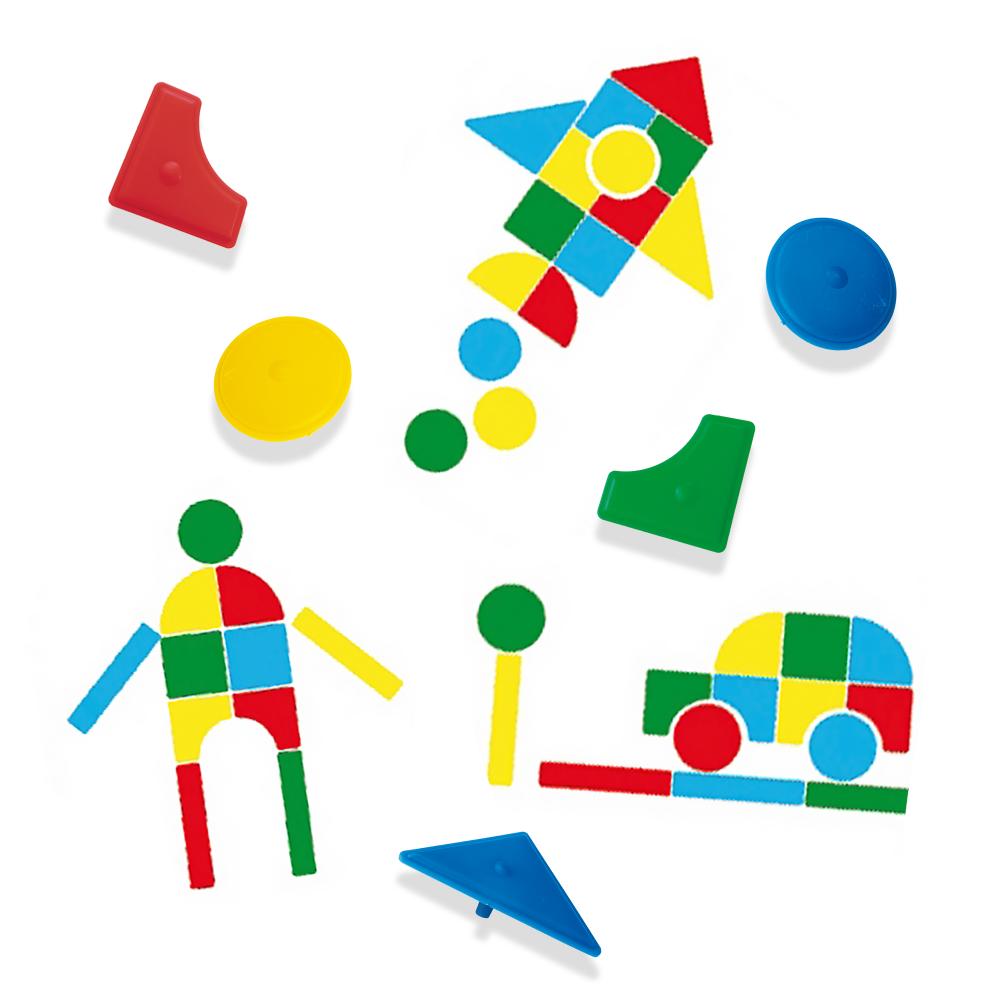 Laissez votre tout-petit créer les plus belles constructions avec les formes colorées ! Il peut construire lui-même les figures les plus amusantes ou suivre les exemples fournis. Fixez les formes avec le marteau, détachez-les et recommencez. C’est l’introduction parfaite au jeu de construction et cela aide les enfants à découvrir leur créativité de manière amusante et ludique.