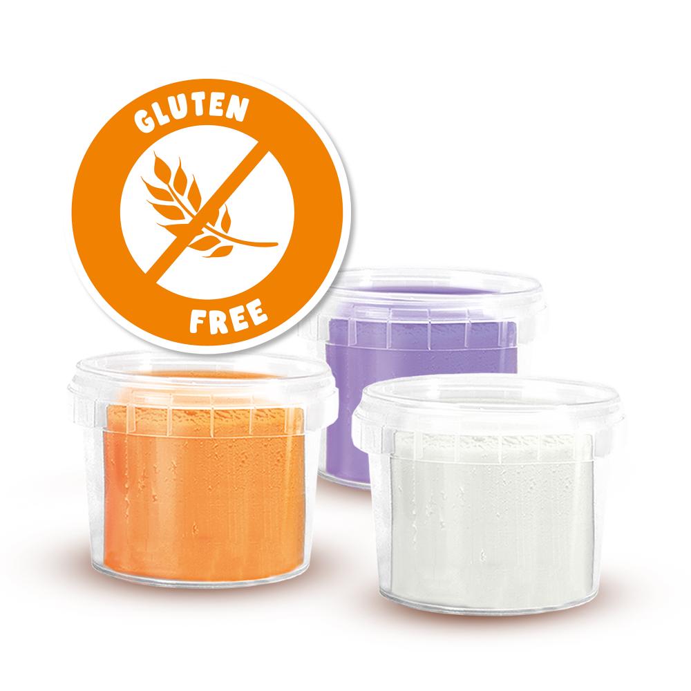 – Pâte à modeler dans les couleurs lilas, orange et blanc