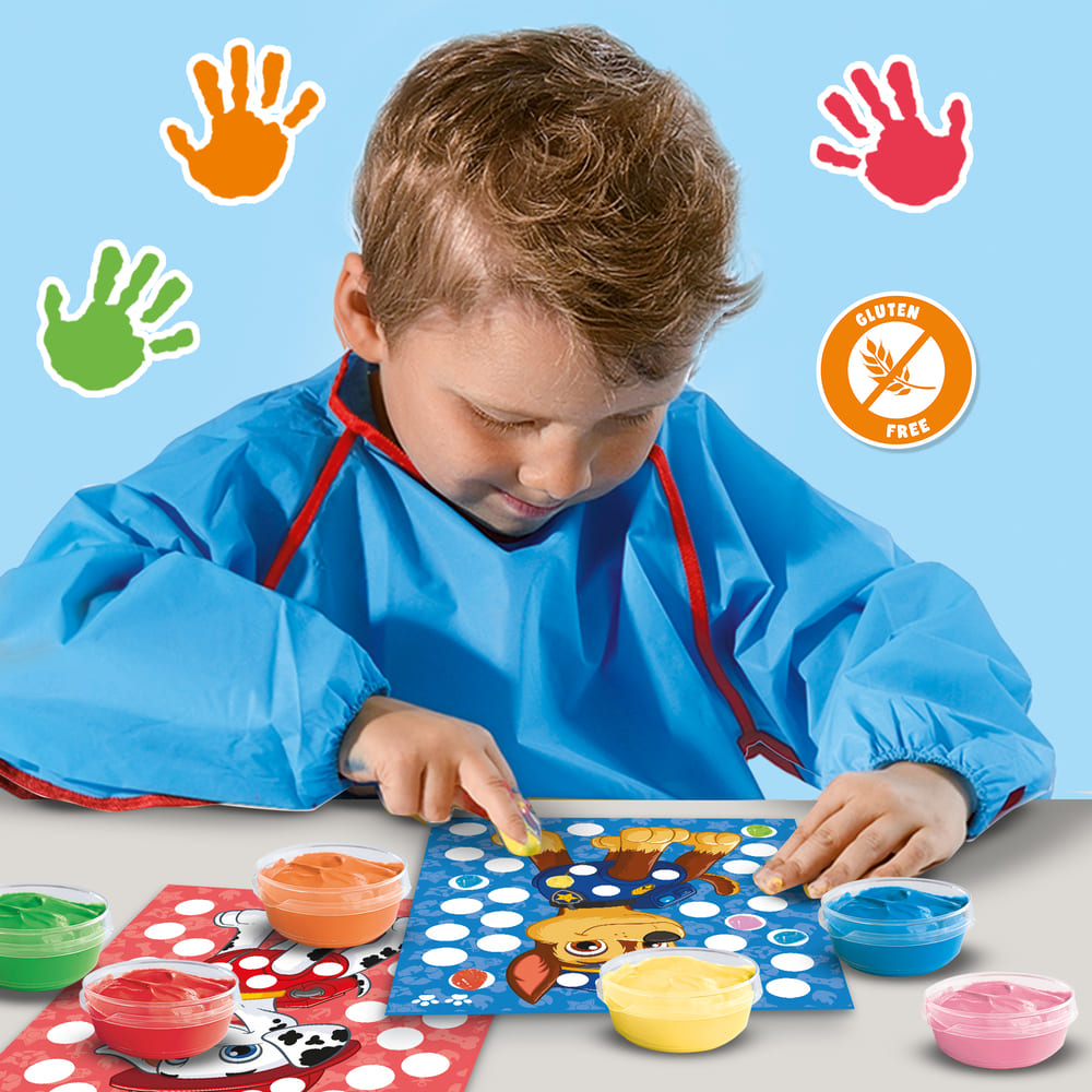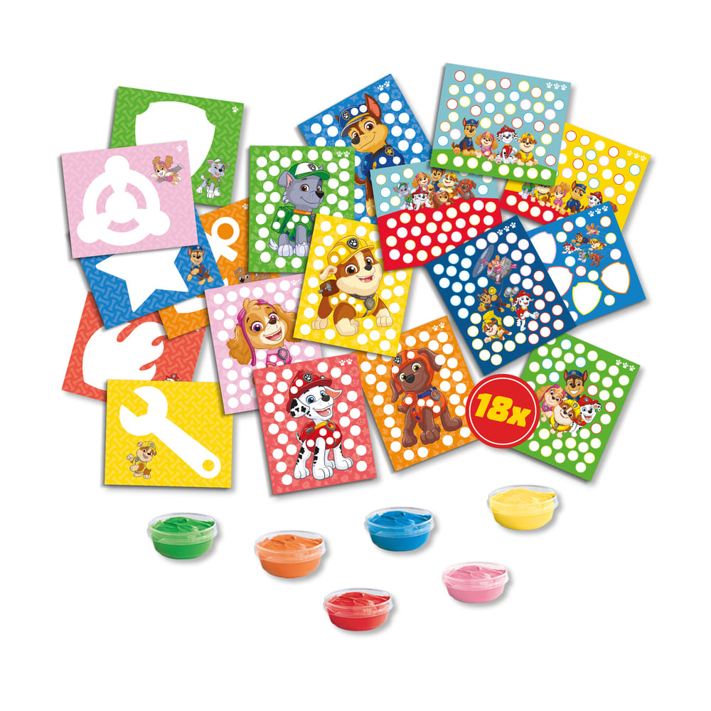 Met de Paw Patrol – Vingerafdruk verf kunstwerk set van SES Creative wordt leren schilderen een feestje. Kinderen ontdekken stap voor stap hoe ze met hun vingers de leukste Paw Patrol-platen kunnen inkleuren. Met achttien grote kaarten en zes vrolijke kleuren verf maken ze zelf de mooiste kunstwerken van hun favoriete helden. Elk kind werkt op zijn eigen niveau en tempo, en dat maakt het extra leuk.
