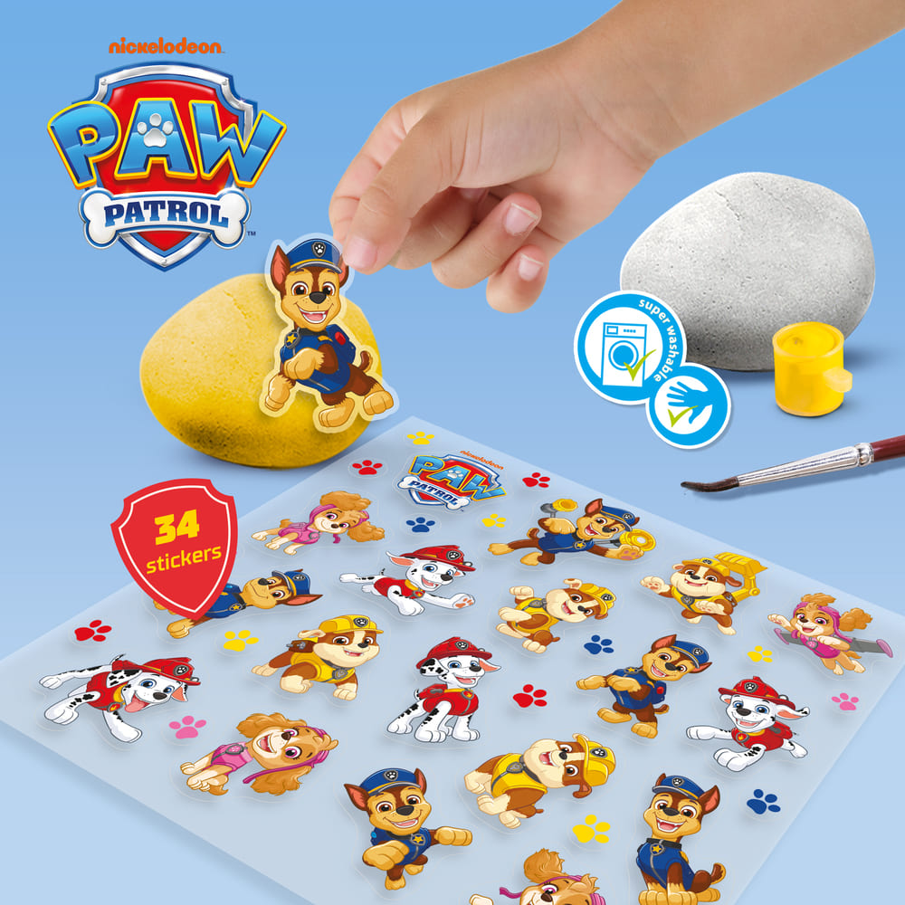 Pak je penseel, kies je stickers en ga aan de slag met de Paw Patrol Stenen Schilderen set. Schilder, versier en red de dag! Net als jouw favoriete Paw Patrol-helden!