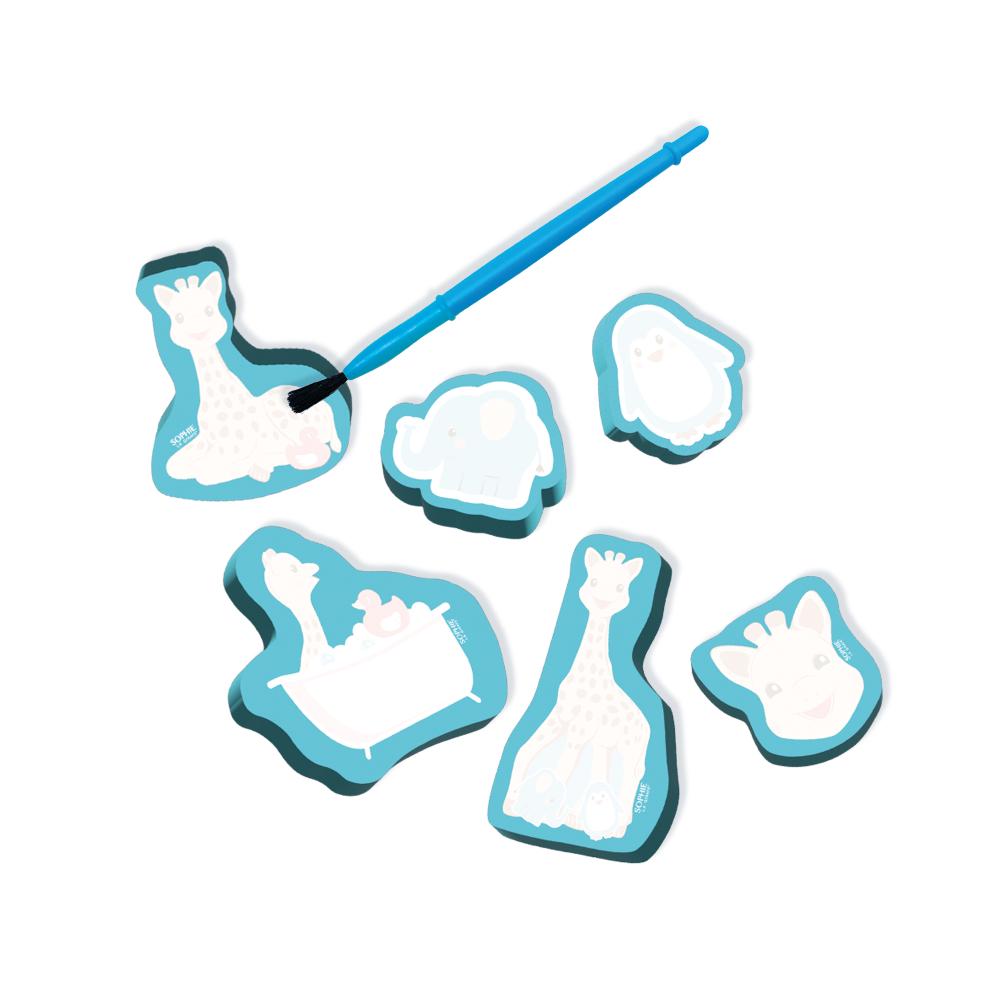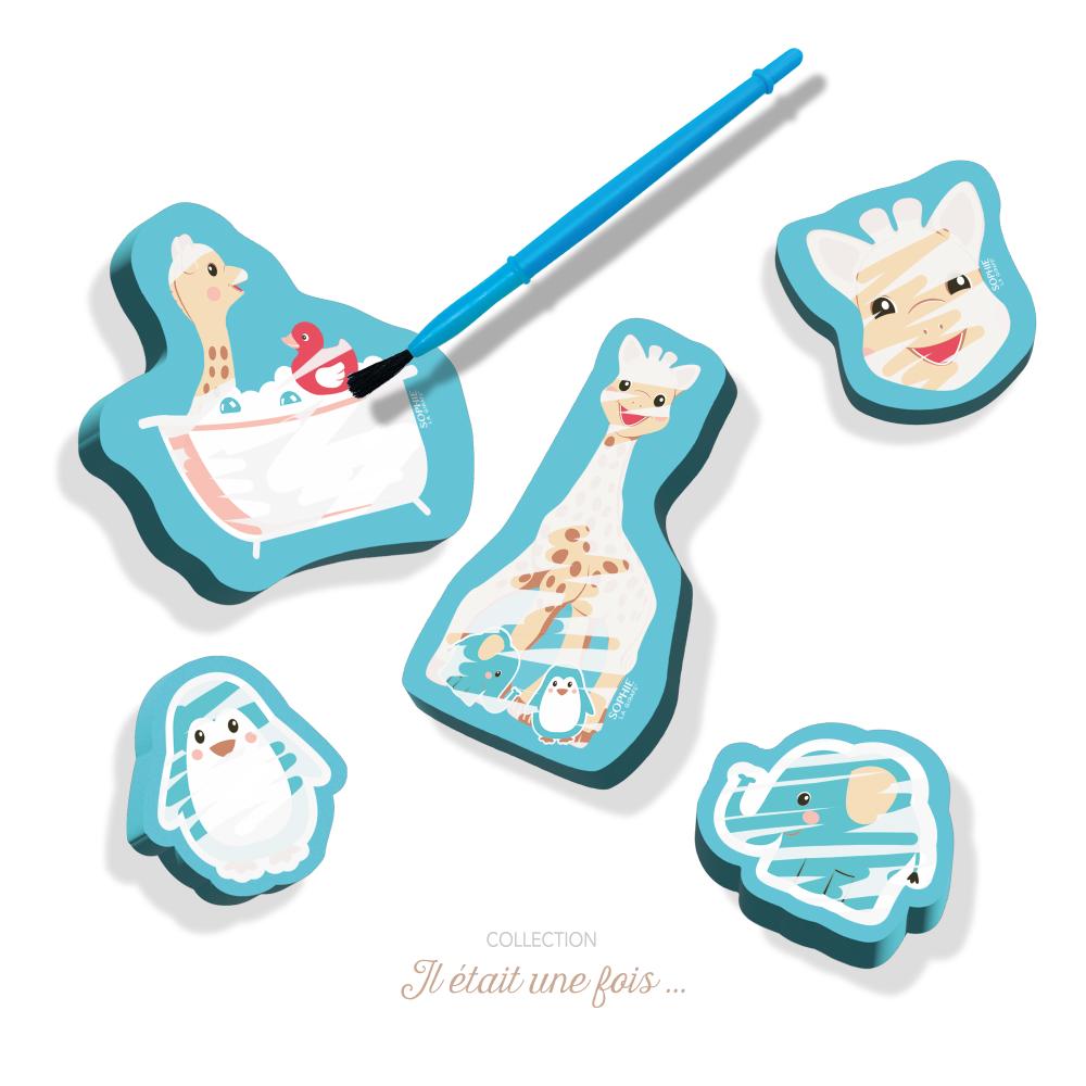 Le jouet bain Sophie la Girafe offre aux enfants une expérience ludique et magique dans l’eau. Grâce aux figurines en mousse réutilisables et au pinceau spécial, les tout-petits peuvent révéler des images cachées en appliquant simplement de l’eau. Une fois les figurines sèches, elles disparaissent pour être redécouvertes à chaque bain.