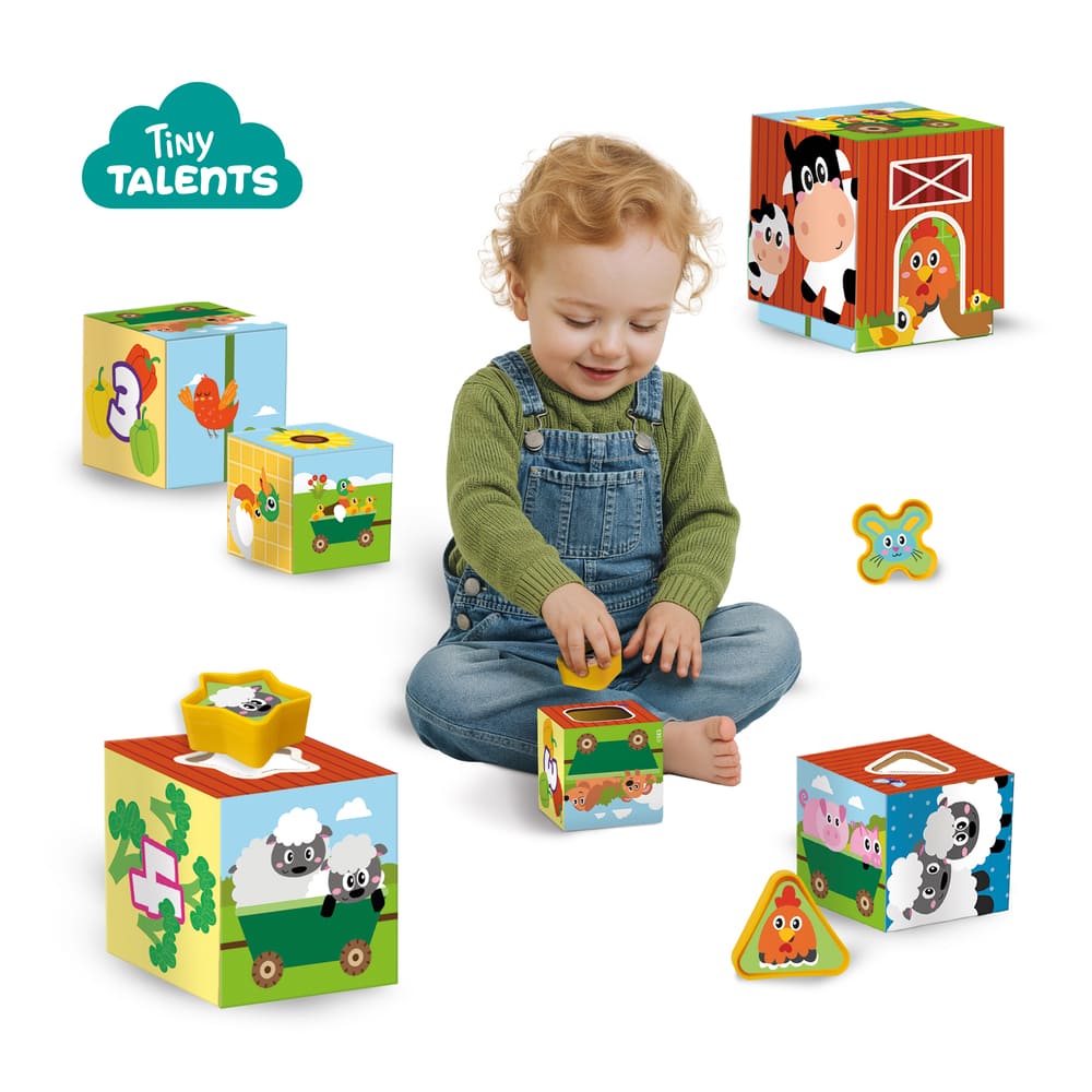 De Stapelblokken Toren en Vormenstoof 2-in-1 stimuleert de ontwikkeling van motoriek, herkenning, tellen en logisch denken. Kinderen oefenen met stapelen, sorteren en combineren, terwijl ze plezier beleven aan het ontdekken van de boerderij. De verschillende kanten van de blokken zorgen steeds voor een nieuwe uitdaging, waardoor het speelgoed lang interessant blijft.