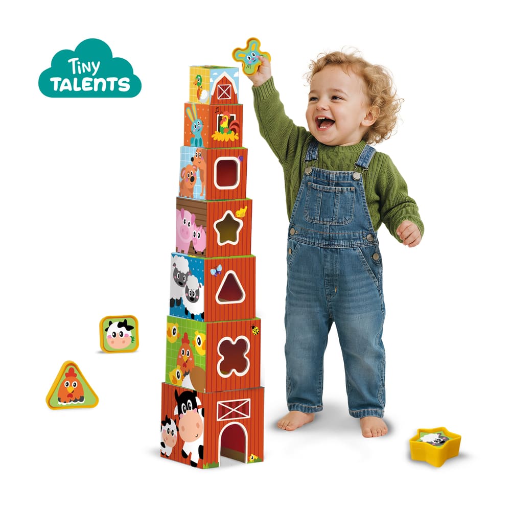 Stapelblokken Toren en Vormenstoof 2-in-1 – Boerderijdieren: Spelen, Stapelen en Ontdekken!