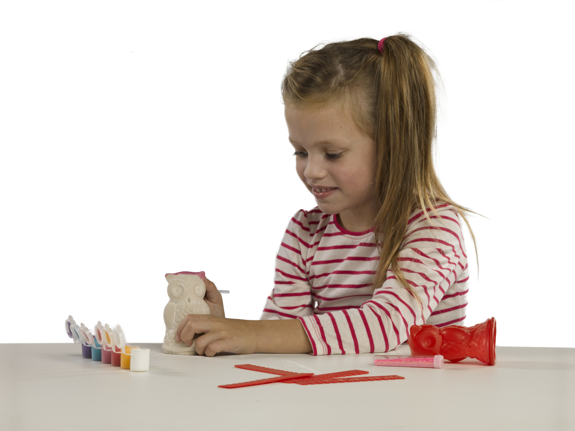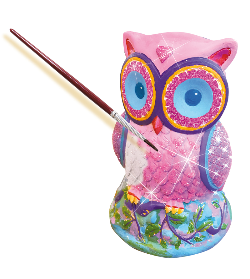 Toi aussi tu aimes les chouettes ? Avec ce kit créatif SES, tu peux les fabriquer en plâtre. Verse le plâtre dans le moule 3D. Laisse ta maquette sécher, puis peins ta chouette avec la peinture incluse. Ajoute la touche finale avec les paillettes. C’est amusant à faire et le résultat est impressionnant !