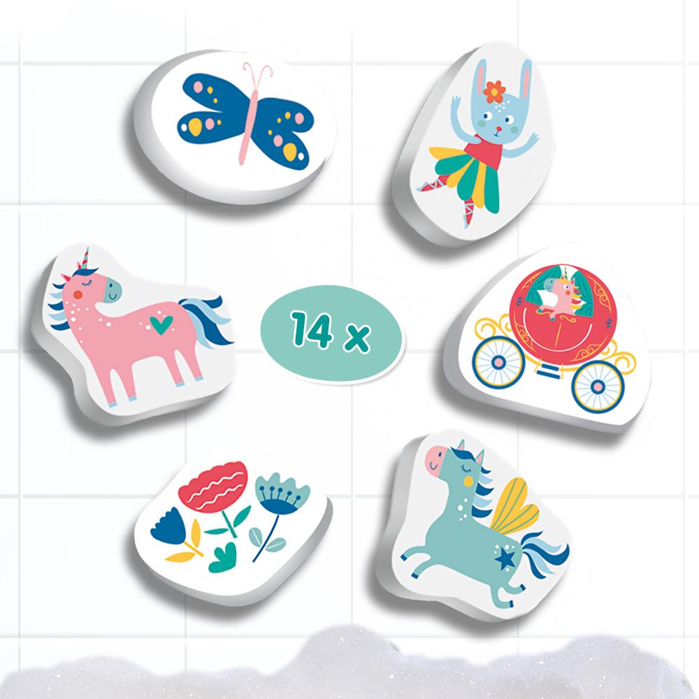 Wat een plezier in bad! Met deze bad sprookjesfiguren maak je jouw eigen sprookjesavonturen terwijl je in het water speelt. De vrolijke figuren blijven drijven en kunnen op de tegels worden geplakt wanneer ze nat zijn. Laat jouw fantasie de vrije loop en creëer de mooiste verhalen tijdens het badderen!