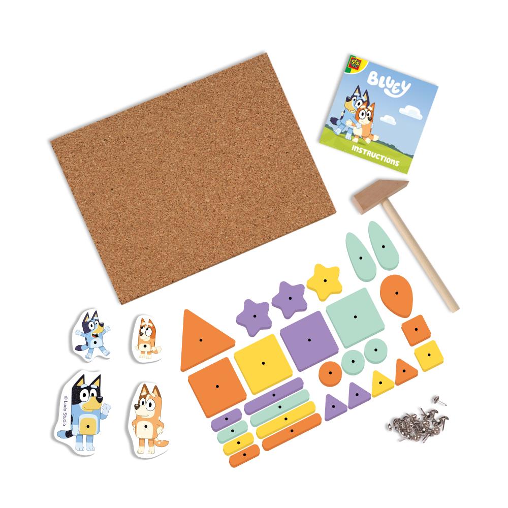 Start het avontuur samen met Bluey, Bingo en hun vriendjes en tik er op los! Met de vrolijke vormpjes maak je de leukste figuren en leer je handvaardigheid.”
