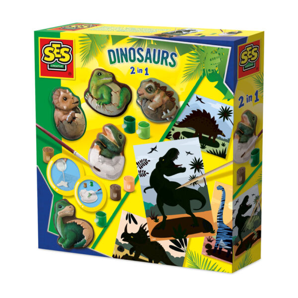 Met de SES Creative Dino’s 2-in-1 set heb je twee creatieve activiteiten in één doos! Maak stoere dinofiguren van gips die je daarna zelf kunt beschilderen, of ga aan de slag met de grote scratchkaarten en ontdek de mooiste dino-afbeeldingen. Perfect voor kleine kunstenaars die van variatie houden en dol zijn op dinosaurussen.