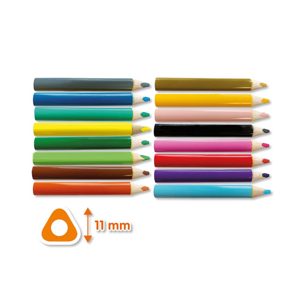 De driehoekige grip maakt tekenen en kleuren niet alleen prettiger, maar ook leerzaam: kinderen leren spelenderwijs de juiste greep, wat later helpt bij schrijven. Met 16 felle kleuren kunnen ze alles maken wat hun fantasie bedenkt – van regenbogen tot fantasiedieren.