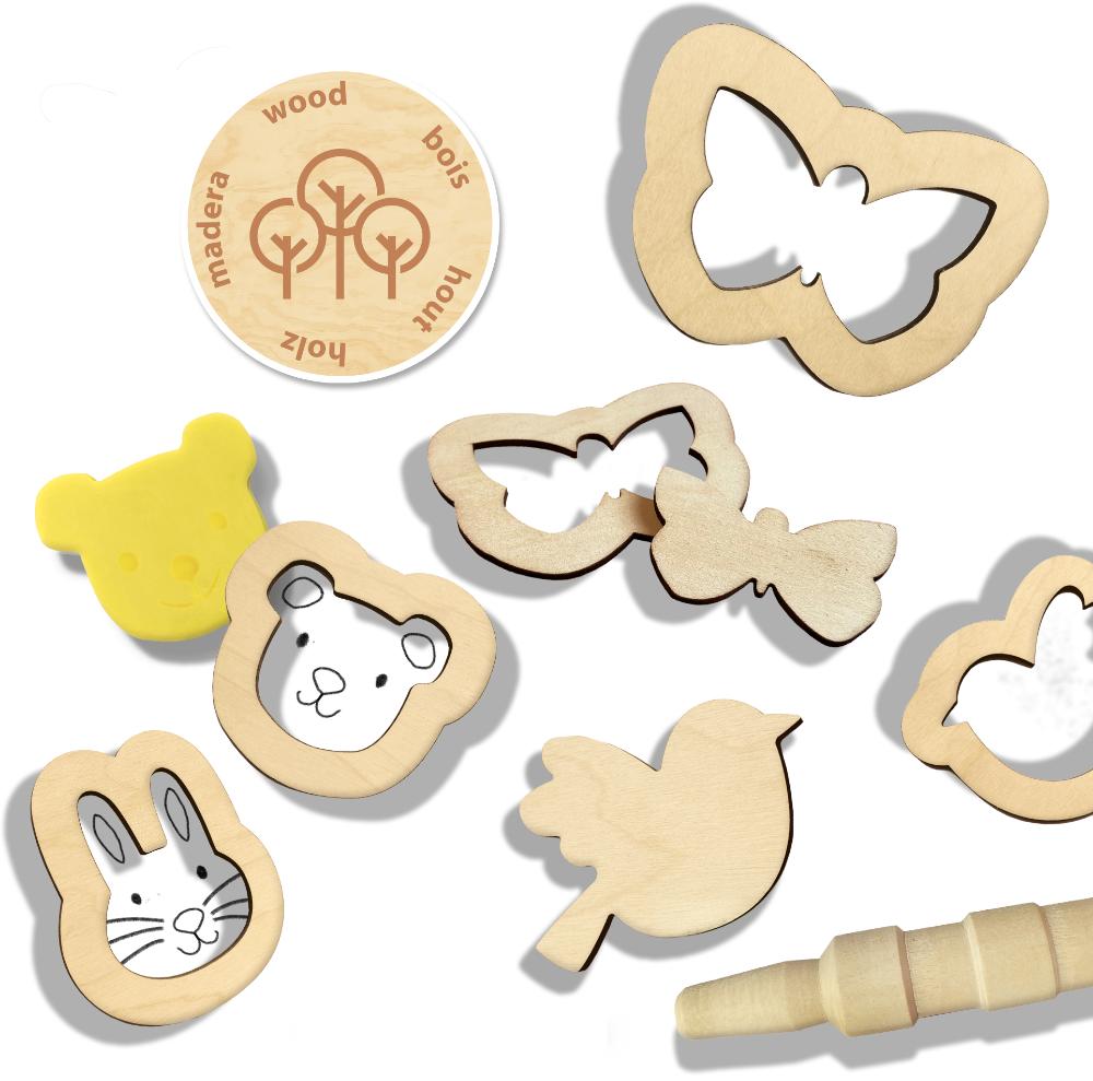 Inclusief houten tools: deegrollers, messen en dierenvormpjes
