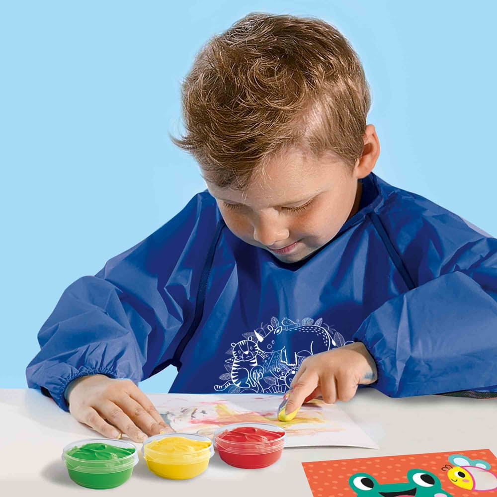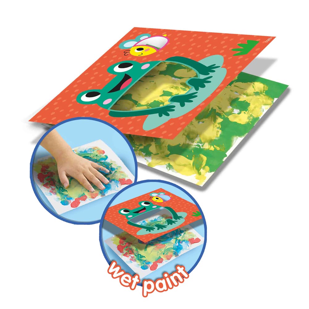 Met deze set kunnen kinderen kleurrijke kunstwerken maken door hun handen en vingers te gebruiken. De voorbedrukte kaarten zijn gemaakt van gerecycled papier en bevatten leuke afbeeldingen die de verbeelding van jonge kinderen prikkelen. Dankzij de uitwasbare verf is het een veilige en gemakkelijke manier om creatief te spelen zonder rommel!