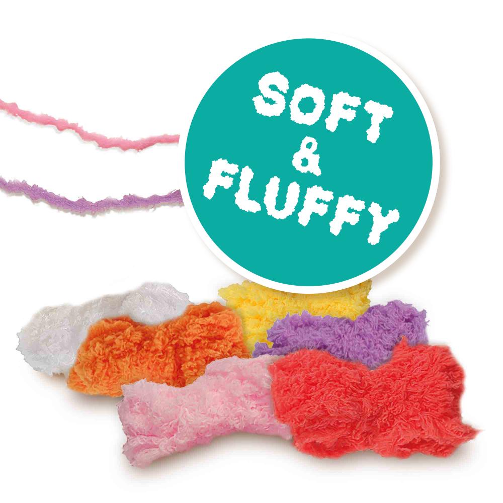 Zacht fluffy garen in zes kleuren voor een tastbaar en pluizig resultaat